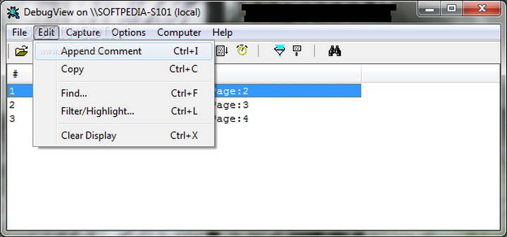 6. When the special debugging output string DBGVIEWCLEEAR is seen in DebugView, the clear output