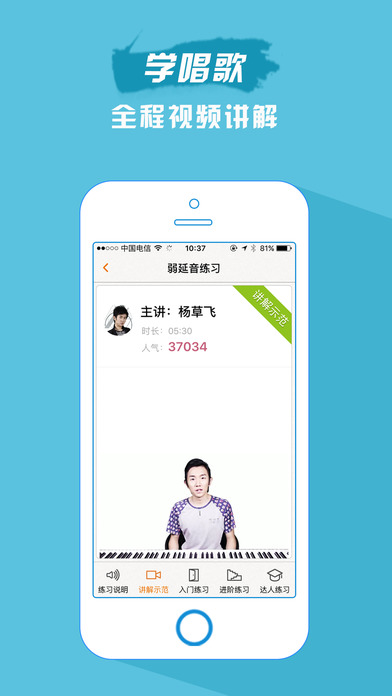 "Singing Skills Sharing" pop music classics are all available live! Free tutorials on popular singing techniques! A large number of free high-definition popular music teaching videos provide you with systematic popularization of popular singing vocal knowledge, music theory knowledge, and also include piano playing and singing, guitar playing and singing, sight-singing and ear training, staff notation, simplified notation, rhythm, composition, musical instruments and other small knowledge teaching, allowing you to experience the charm of celebrity music online classes anytime and anywhere, a must-have for karaoke masters.