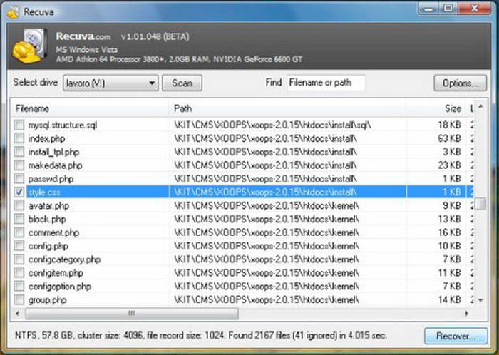 From the search results, we can see that Recuva’s search function is quite good, and many files that were deleted long ago have been found. In the window we can also see the detailed data of each recoverable file, including path, size, date, status, etc.