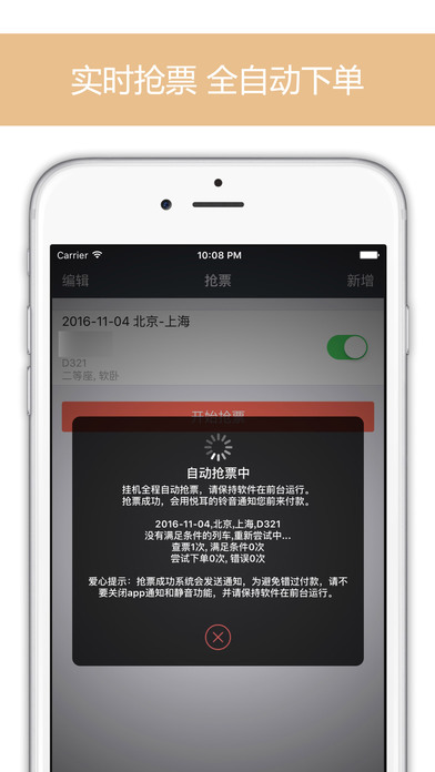 Handheld train ticket for 12306 official website train ticket grabbing software review