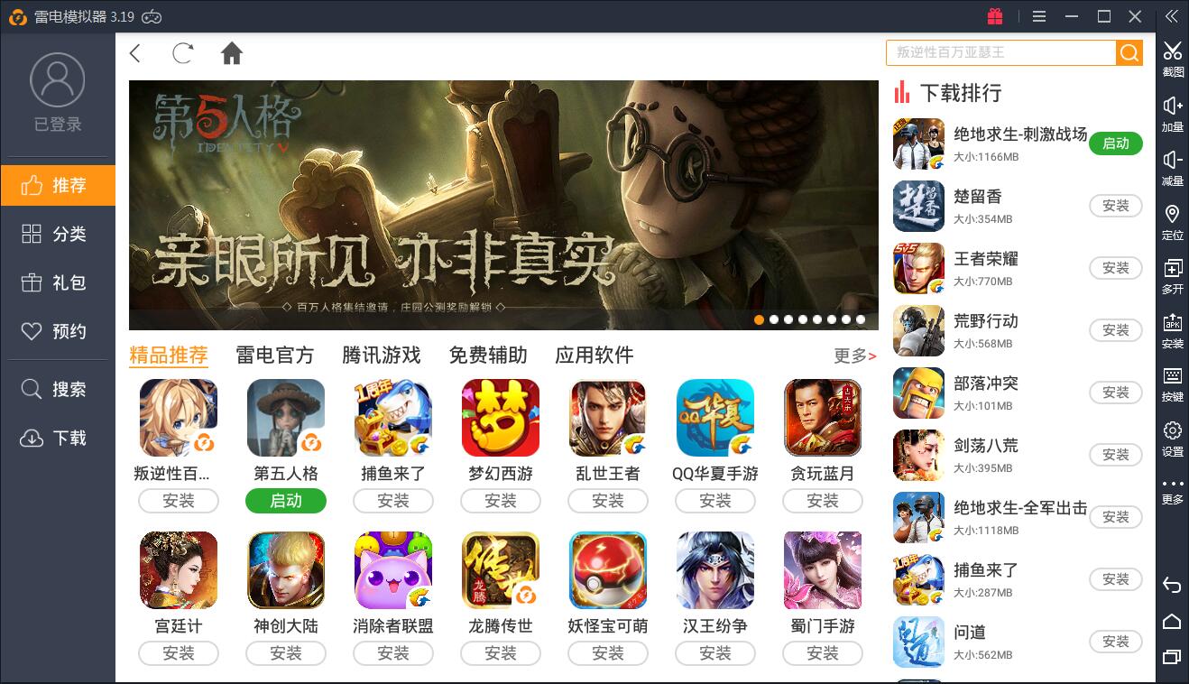 Download the newly needed programs in the application center of the Thunderbolt Android emulator, such as WeChat, Alipay, QQ, QQ Space, ofo shared bicycles, etc.
