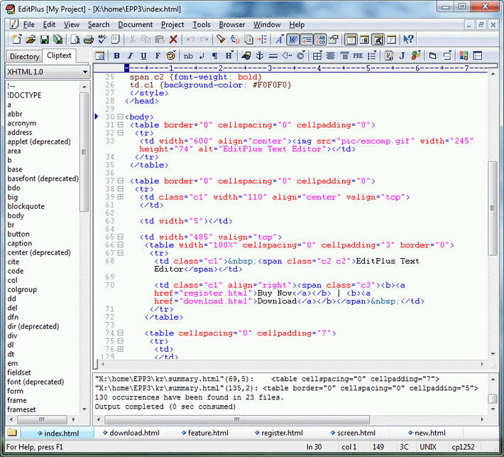 7. Editplus supports syntax highlighting of HTML, CSS, PHP, ASP, Perl, C/C++, Java, JavaScript and VBScript by default. By customizing syntax files, it can be extended to other programming languages and can be downloaded from the official website (most languages are supported).