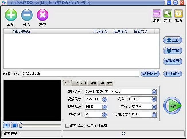 FLV video conversion tool is a powerful MP4 video converter that can help you convert almost all popular video formats, such as: FLV, RM, RMVB, VOB, DAT, VCD, DVD, SVCD, ASF, MOV, QT, MPEG, WMV, MP4, 3GP, DivX, XviD, AVI and other video files to video formats supported by MP4 machines, smartphones, Apple iPod, Sony PSP.