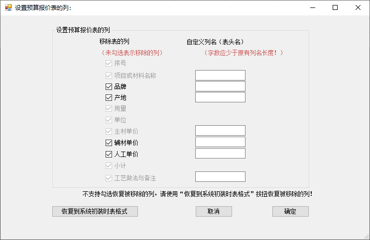 4. Supports customizing the quotation items of the budget quotation table (freely select columns according to company conditions) and quotation item names (customized column header names).