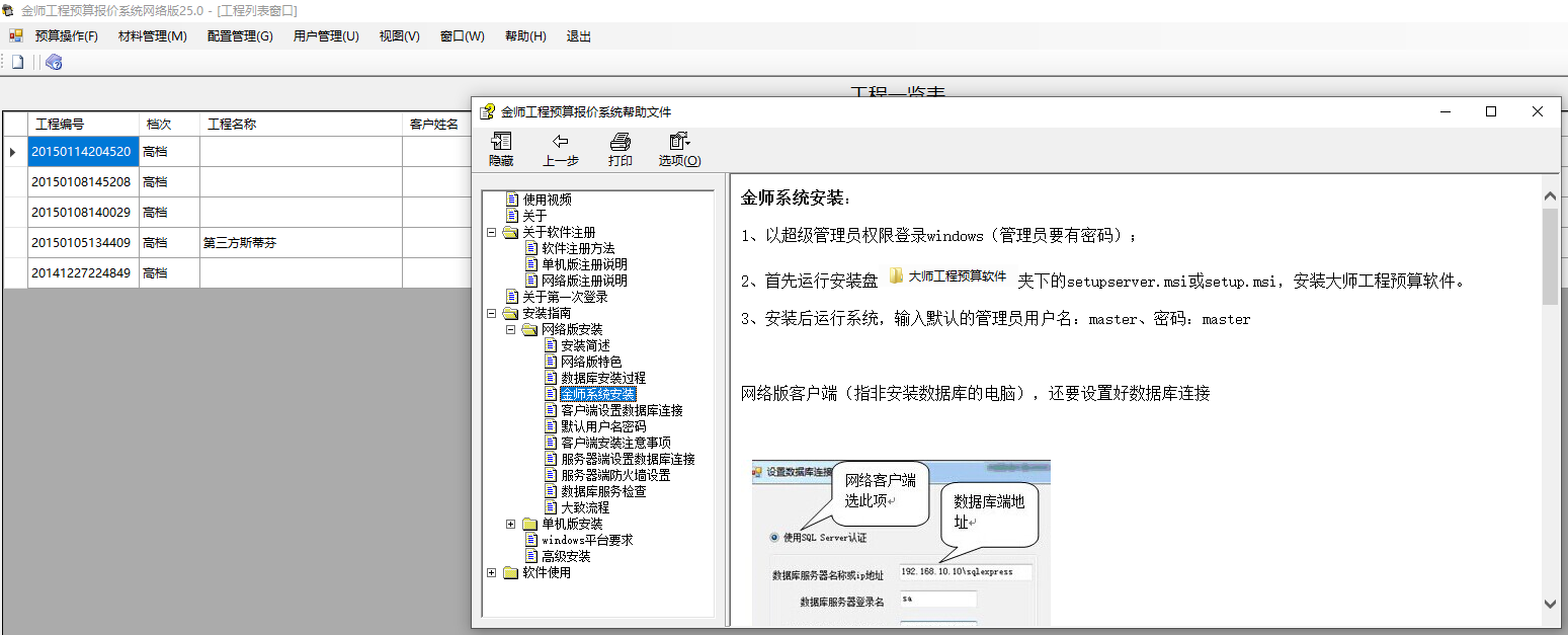 Before using the online version, you need to install the database first. Note that you only need to install the database on one computer (the so-called server), and other computers do not need to install the database. Other computers only need to install the Jinshi Engineering Budget System (excluding the database part installation), and then use the same database online.