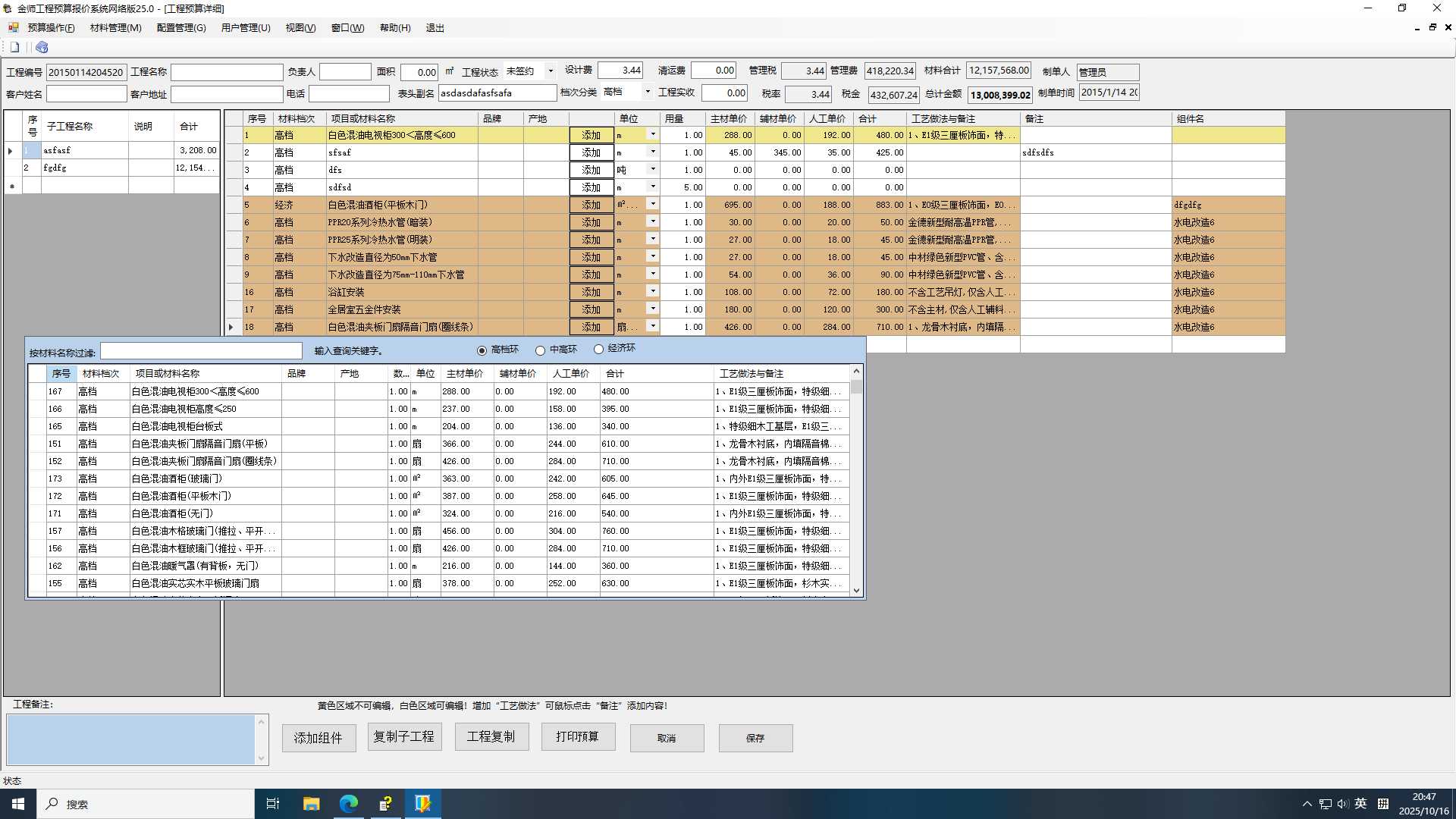8. Supports quick budget operations such as component addition, sub-project copy, and project copy.