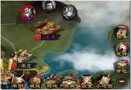 Only after the city is successfully recovered can other functions of the city be opened, such as viewing city information, suppressing bandits, city battles, visiting or discussing with the generals who defended the city.