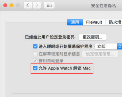 Step 3: In the Security and Privacy interface, check the Allow Apple Watch to unlock Mac option.