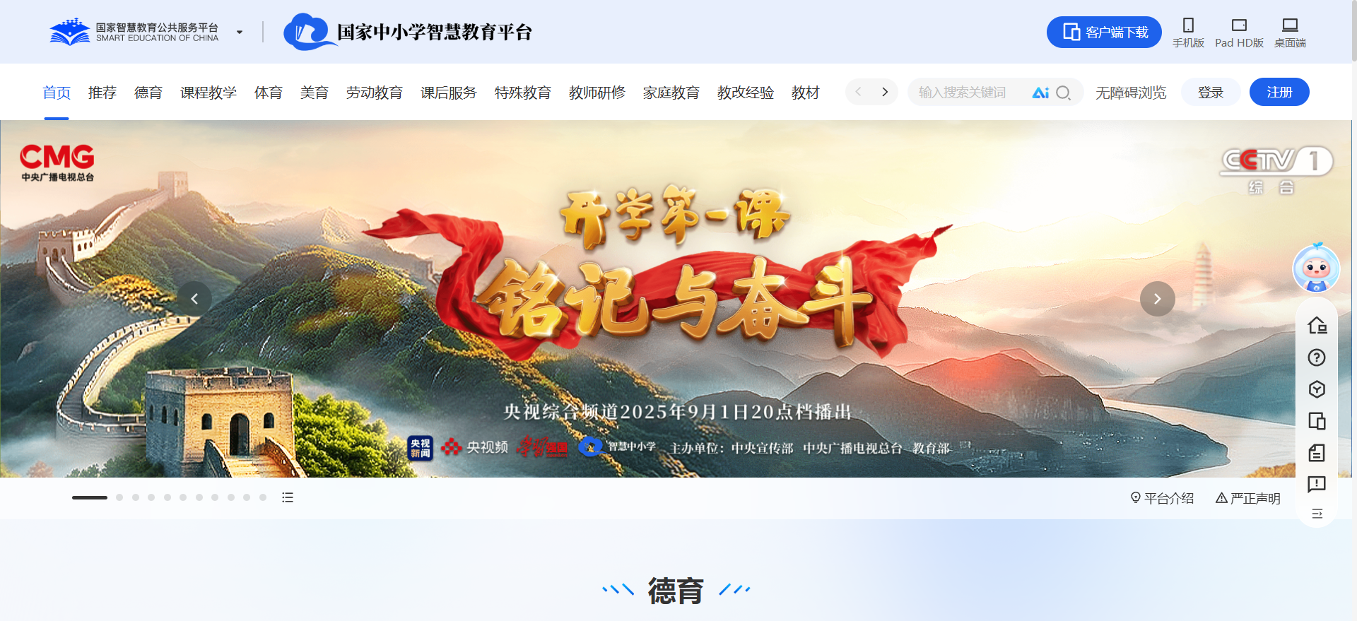 The web version of the National Smart Education Platform for Primary and Secondary Schools is a national-level digital education infrastructure led by the Ministry of Education. It was upgraded from the original "National Primary and Secondary School Network Cloud Platform" and provides education services for all school periods and all scenarios to primary and secondary schools, teachers, students and parents across the country. The platform integrates more than 110,000 high-quality resources, covering 13 major sectors such as moral education, curriculum teaching, physical education, aesthetic education, and labor education. It supports 10 types of education and teaching scenarios (such as dual-teacher classrooms, teacher training, and home-school interaction). It is the core carrier to promote educational equity and quality improvement.