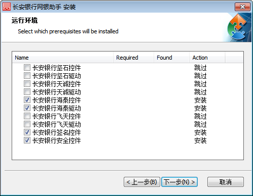 5. Enter the installation environment interface for selecting Changan Bank Online Banking Assistant. The following drivers and controls are related to your previous selection. You can leave them alone by default or check or uncheck them according to your needs. After setting, click [Next].
