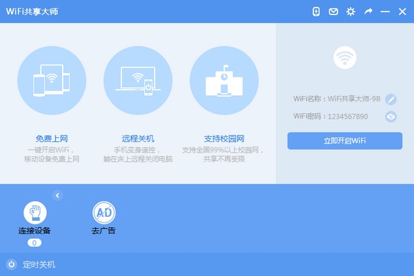 3. If you have a wireless network card in your computer, WiFi Sharing Master will default a WiFi network name and password, just click the "Create Free WiFi" button.